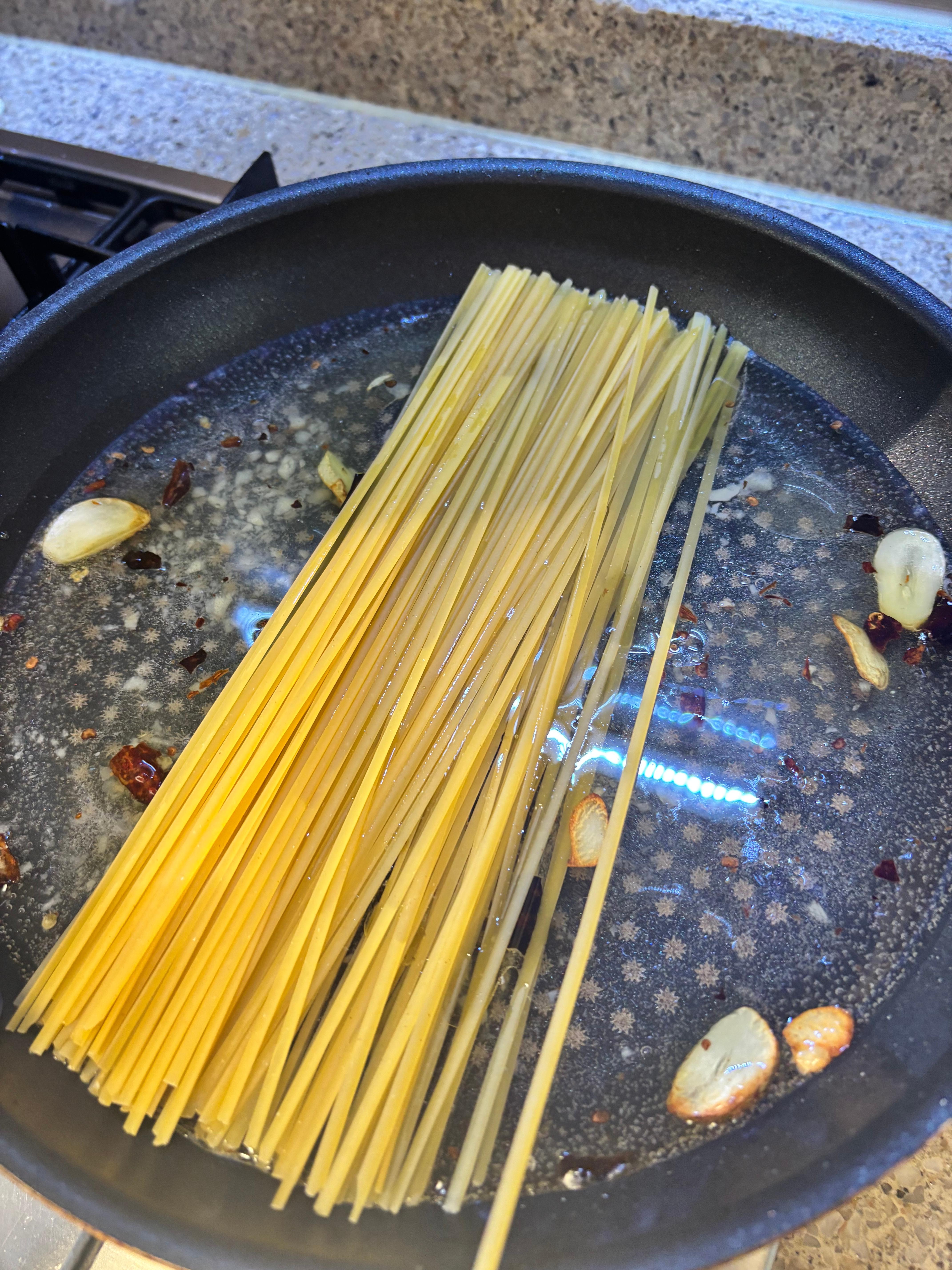 대신 궁중팬으로 조리하실 때는 파스타를 반으로 잘라서 넣어주셔야 할 것 같아요.